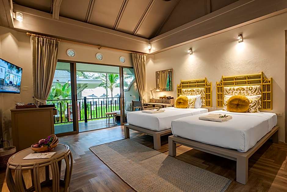Beachfront room features a spacious private balcony overlooking the Andaman Sea and 29-inch flat-screen TV.